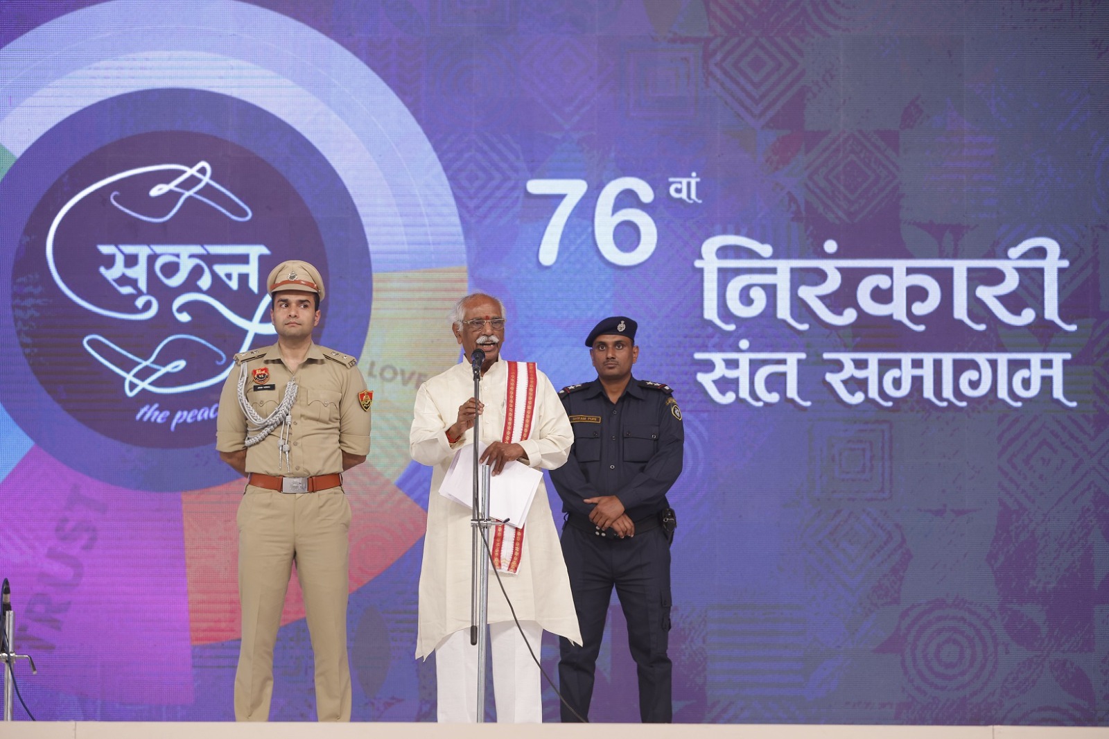 हरियाणा के महामहीम राज्यपाल श्री बंडारू दत्तात्रेय ने समागम में पधारकर सद्गुरु माता सुदीक्षा जी महाराज का आशीर्वाद प्राप्त किया। इस अवसर पर उन्होंने अपने भावों को अभिव्यक्त करते हुए सभी निरंकारी भक्तों को समागम की शुभकामनाएं दी। साथ ही मिशन द्वारा समय समय पर किए जा रहे जनकल्याण के कार्यों हेतु भूरि भूरि प्रशंसा की।